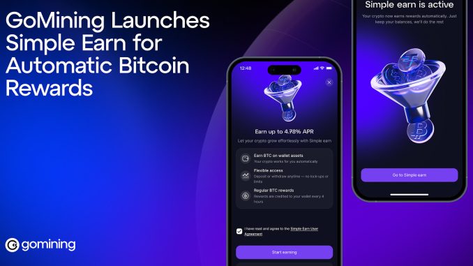 GoMining Simple Earn Enables Autonomous Bitcoin Yield Accrual via Single-Toggle Integration